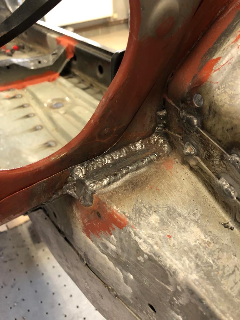 Nakonec sem byl ukecán na to to provařit až do domků, s tim, že se bojim, aby to pak nebyl problém při přihlášení, uvidíme. Pak už bude jen rozpěra mezi domkama, trojúhelníkové výztuhy pod blatníkama (které díky provaření do domků jsou už možná zbytečné), rozpěra mezi tension rod brackets a výztuha mezi nosníkama za motorem. To by snad mělo stačit.