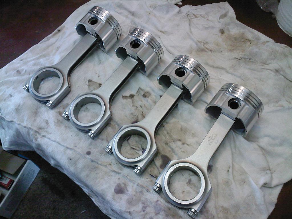Dneska sem zkontroloval vůle hlavních ložisek kliky a zkompletoval písty a ojnice.