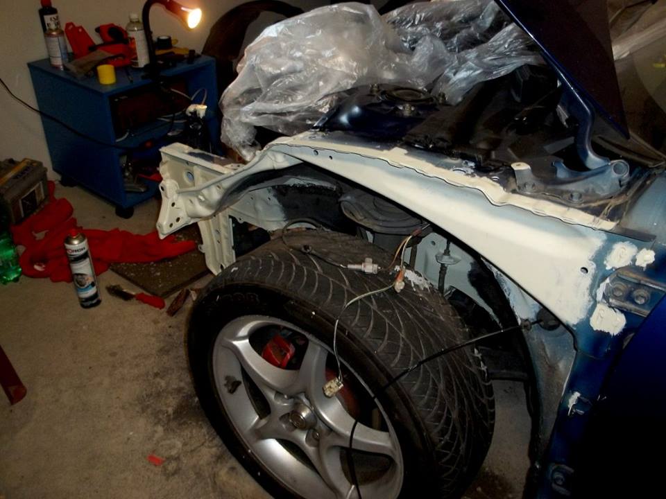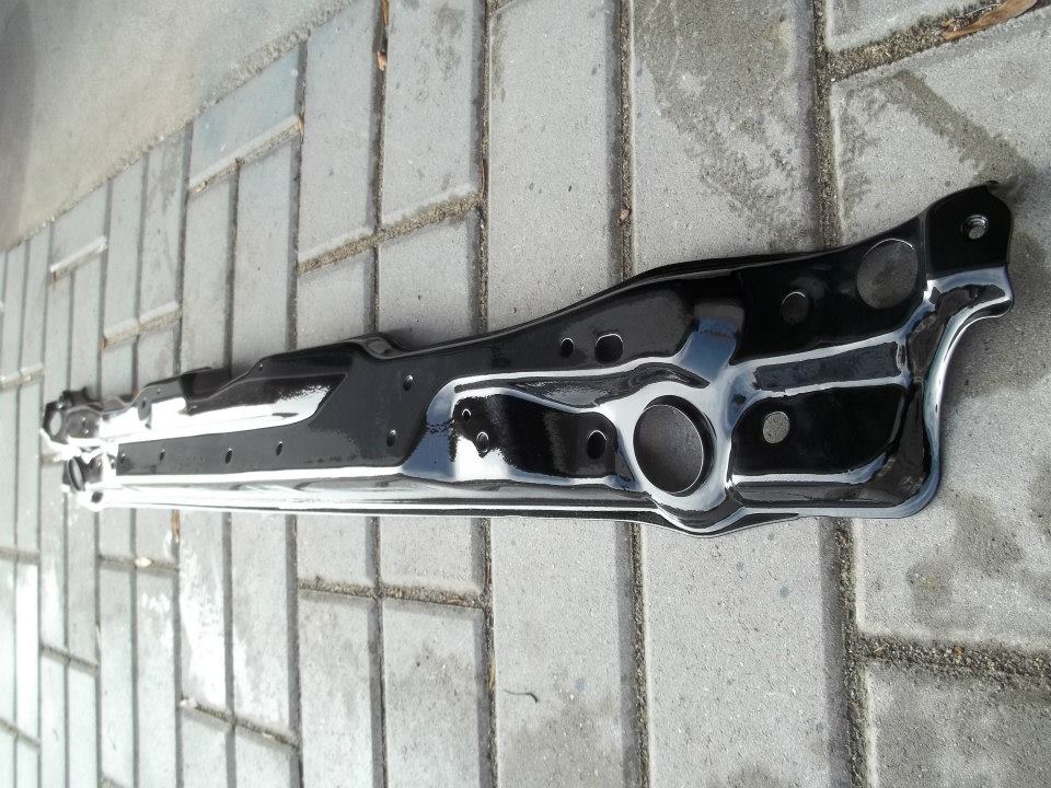 Obroušení koroze a ochrana na další léta. Dělal jsem takhle i zadek a kus podvozku abych pak už nemusel sundavat zadní nárazník... download/file.php?id=3665&mode=view , ten podvozek pak dodělám celej i s ramenama a nápravnicema. Ty hodim asi do červený. Na ten epoxyd pak stříkám černou a lak. Původně ten motorák nebyl v plánu, ale když už jsem to takhle rozebral, tak jsem to vzal celé. I u předních kol. Takže motorák bude černej...tu modrou mi míchali třikrát a pokaždé jiný odstín, černá je jedna