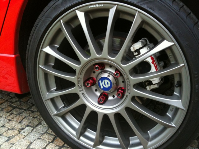 Hurikanus: objednával jsem je z ebay, jsou z USA, značka ZERG Industries. Barva na tom zatím drží, mám na to speciální klíč, který údajně nesjíždí hrany a neodírá barvu. Ale pár škrábanečků (vlasečnic) už sem tam je. Dotahuju je momentovým klíčem na 110 Nm.