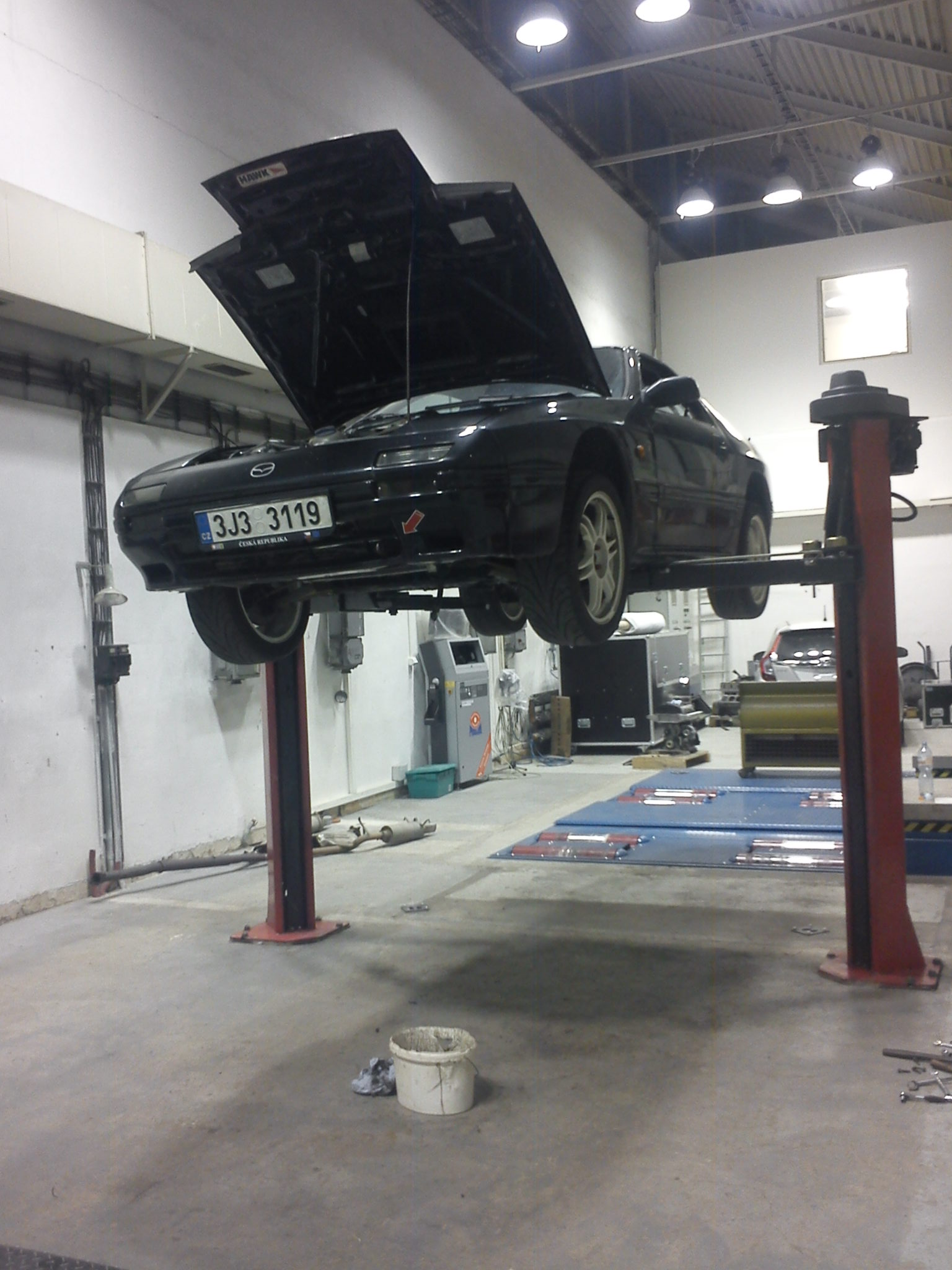 aktuálně: kola obutý, DTSS replacement doma, takže se mohly konečně nasadit těhlice a na ně kola. Dále jsem zkontroloval a seřídil TPS a zkompletoval výfuk - nechal jsem si na míru vyrobit decat a zbavil se tak předkatalyzátoru...kat už je venku dávno.