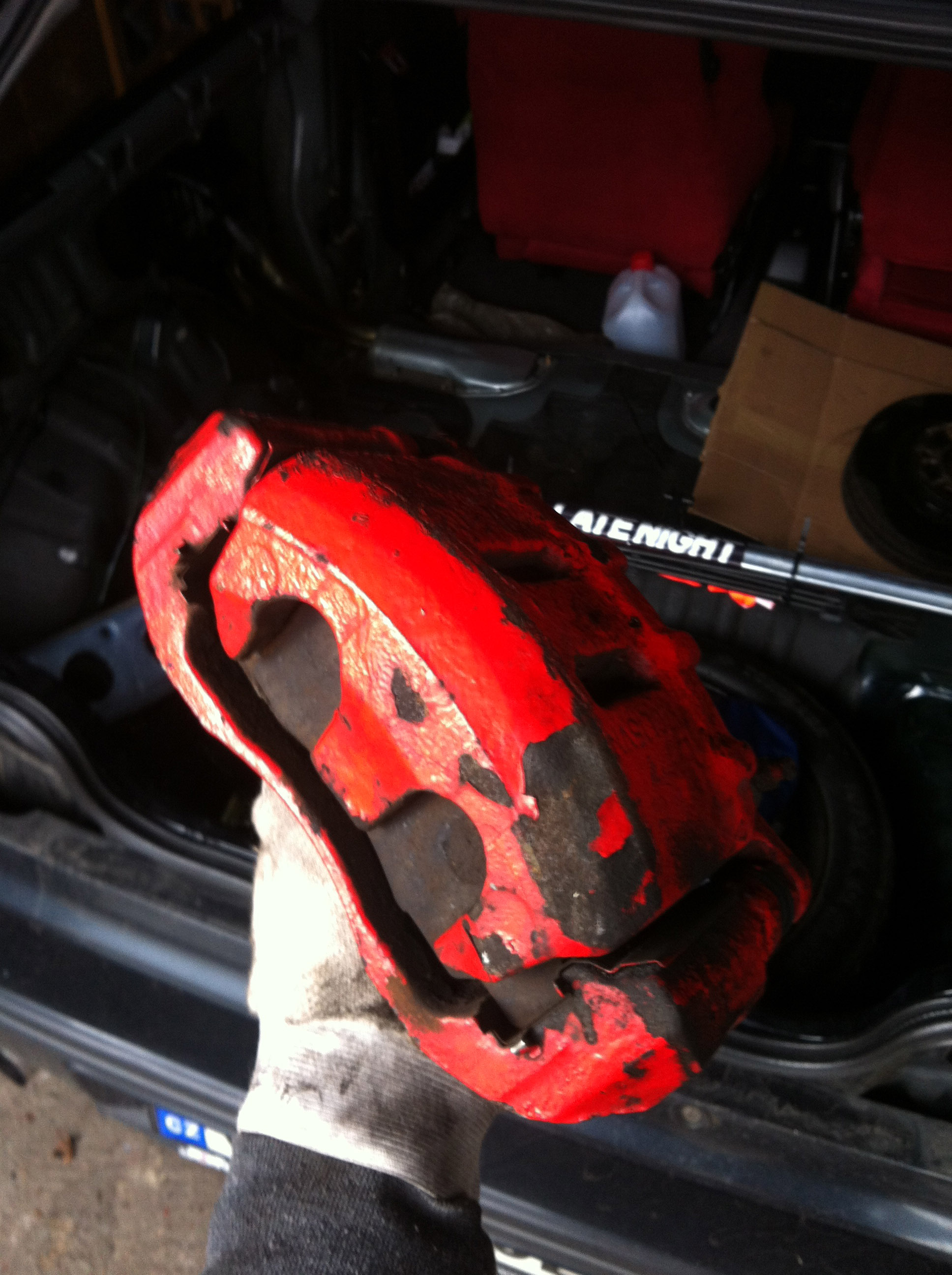 Třmeny z Accorda Type R... Chci zachovat kotouč 300 oproti nynejším 262, ale bez broušení to nepůjde, protože do 15" kola se to už nevejde. Použijou se pak kotouče z Fiata s roztečí 4x98, který se převrtá. Pokud by byl ještě problém s chlazením díky malému prostoru mezi kolem a třmenem tak pak ještě přidám hadice na chlazení brzd.
