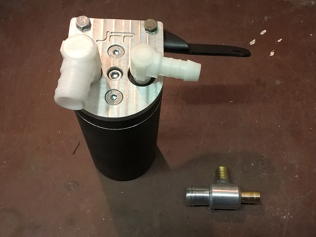 Pustil sem se do menší optimalizace motoráku. Přesunul sem solenoid ovládající aktuátor WG, abych co nejvíc zkrátil k němu vedoucí hadice. Demontoval měřák tlaku paliva z lišty, protože tam byl skoro k ničemu. Na soustruhu sem si vytočil adaptér pro spojení odvětrávacích hadic. Průměr výstupu je spočítaný tak, aby jeho plocha byla součtem ploch obou vstupů a nedocházelo tak k restrikcím. Nakonec sem namontoval nový OCT. Výstup z OCT příjde časem zvětšit na sejný průměr, jako má jeho vstup. Nejdřív ale budu muset zvětšít přípojný port na sání, do kterýho je výstup OCT zapojený.