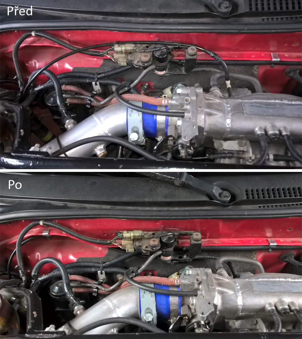 Pokud bude čas, tak bych chtěl tenhle rok auto trochu zoptimalizovat a předělat některý komponenty, který teď dokážu díky lepšímu strojnímu vybavení vyrobit na vyšší úrovni. Třeba v motoráku je docela změť hadic spojených s přeplňováním, taky přední horní rozpěra nevypadá úplně top ...