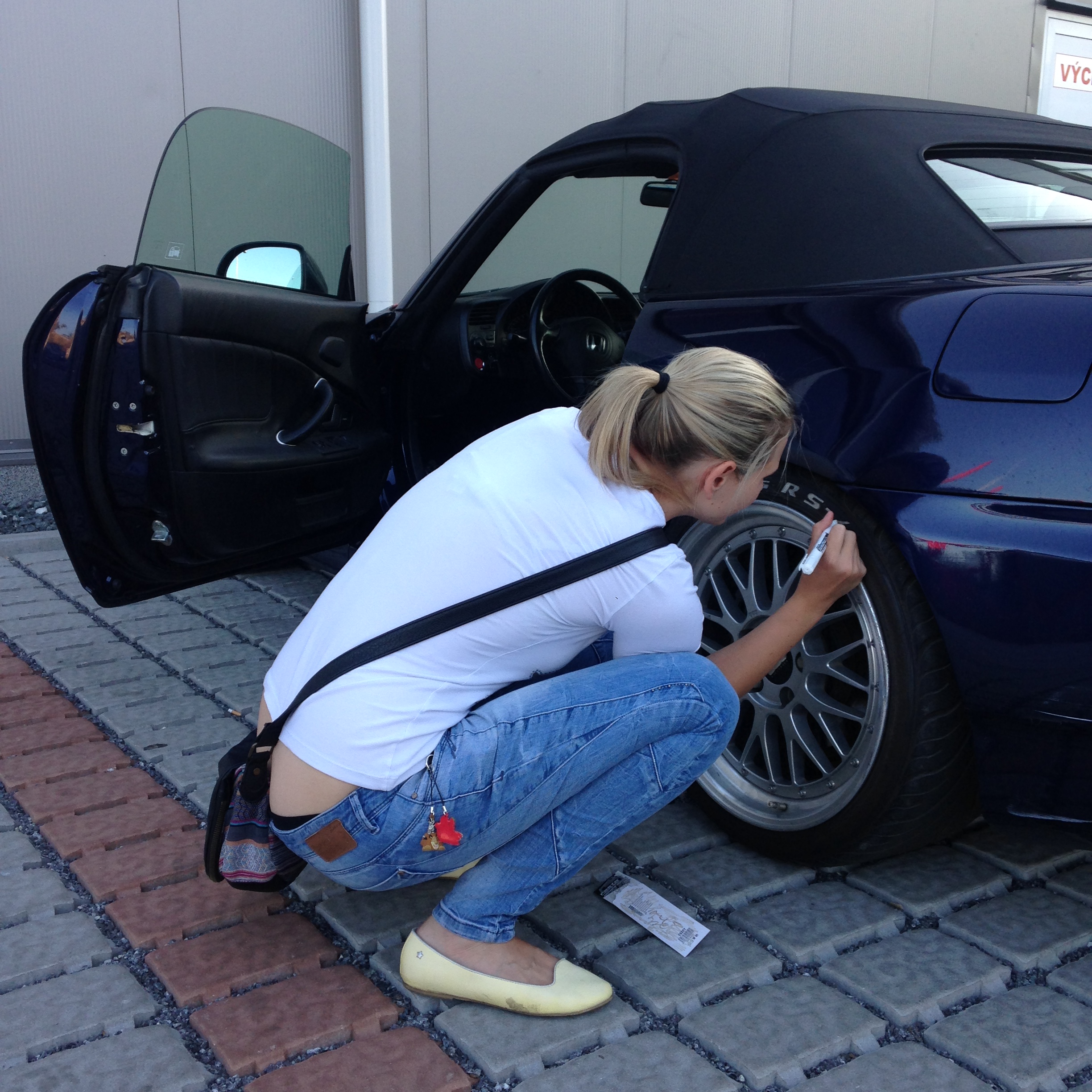 Úplně první věc co jsem že jsem hondu obul do Federalu 225předek a 245zadek a kamarádka dostala fixu do ruky