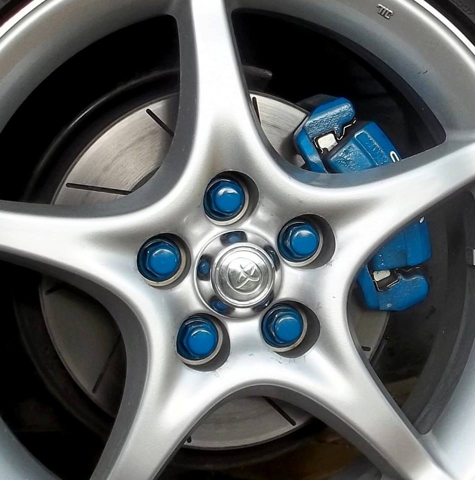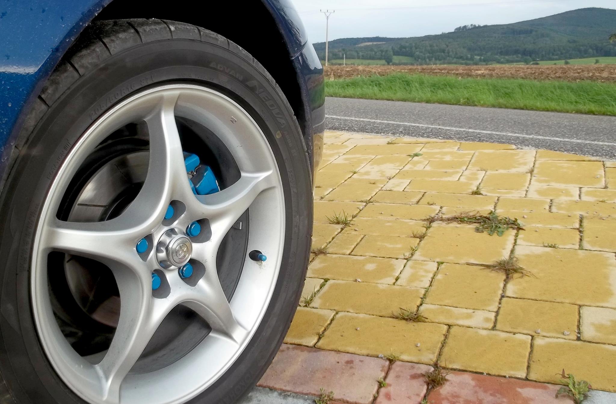 Tak jsem odtunil moje modré kotouče, modré brzdiče a modré šrouby. Kotouče na černo, šrouby funglovky a pro třmen jsem vybral takovou neutrální netuzerskou barvu. Při rozebrání jsem zjistil, že šrouby ve kterých jezdí třmeny...no divil jsem se, že se to vůbec hejbalo, to samé ty tyčky co drží desky. Ve předu je to stejné, jen ještě přestříkat třmeny. Snad se líbí :))