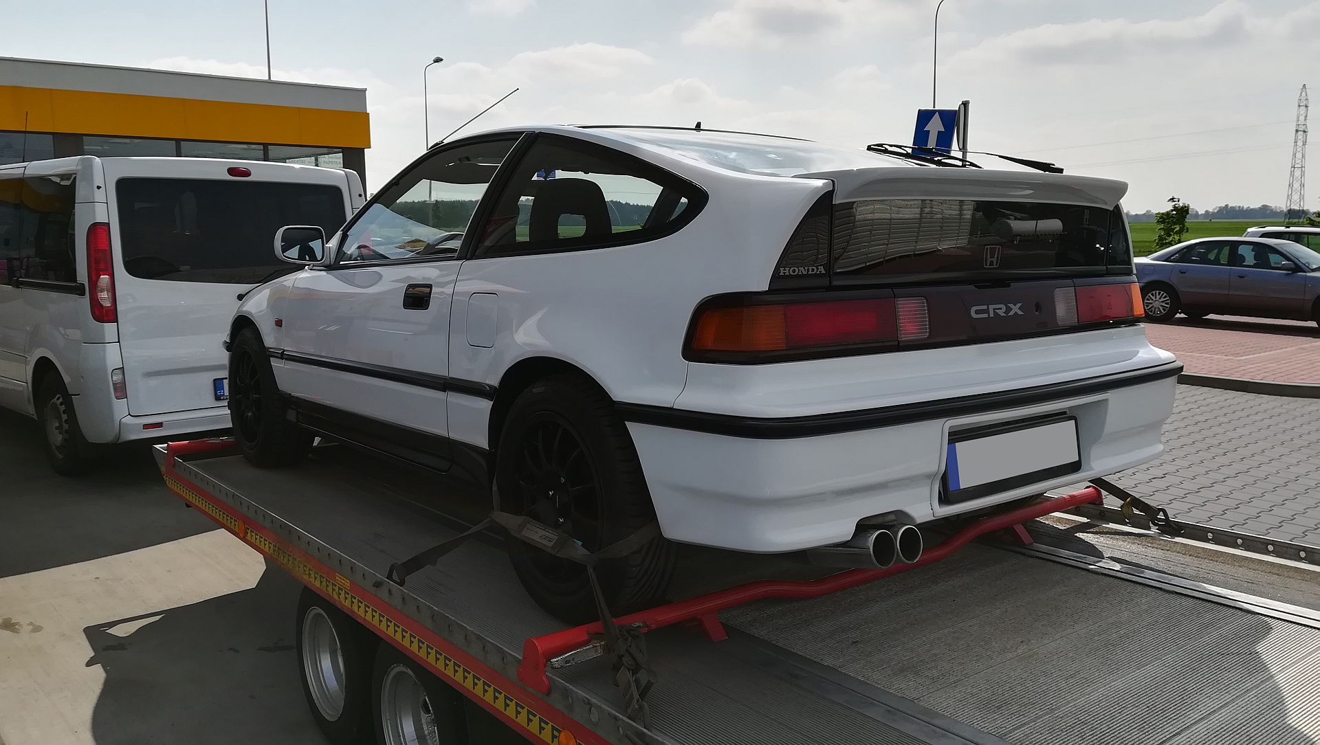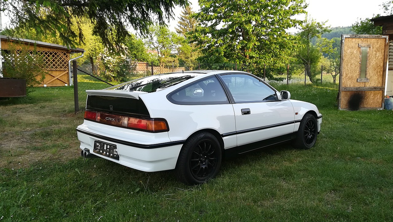 Po docela masivním hledání a domlouvání (díky všem co mi s tím pomohli) se mi podařilo sehnat celkem obstojnou náhradu za minulé CRX. Včera sem ho přivezl do ČR. Je to švýcarská verze (el. okna a zrcátka), dovezená před rokem do Polska (zde i koupeno). Motor je D16A8 najeto cca. 195 000km. Celkově je auto v dobrém a víceméně originálním stavu (vyjma jiných kol, koncového tlumiče výfuku, jiných tlumičů / pružin a lakovaní některých karosářských dílů).