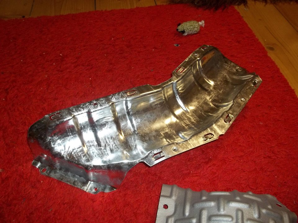 Kryt na výfuk pod nádrží jsem nechal pozinkovat. To samé ten spodní kryt na svody...jen je ještě přes ten zinek natřený vypalovací barvou, tak je matnej. Postupně seženu všechny a až to bude komplet, vyměním najednou.