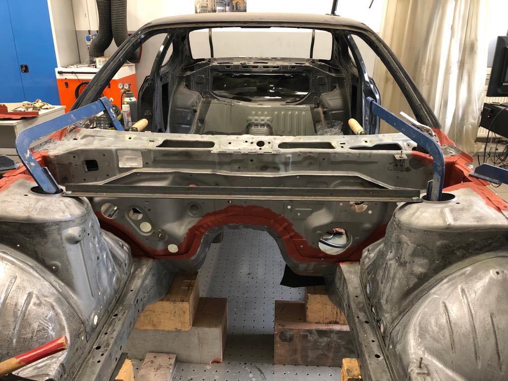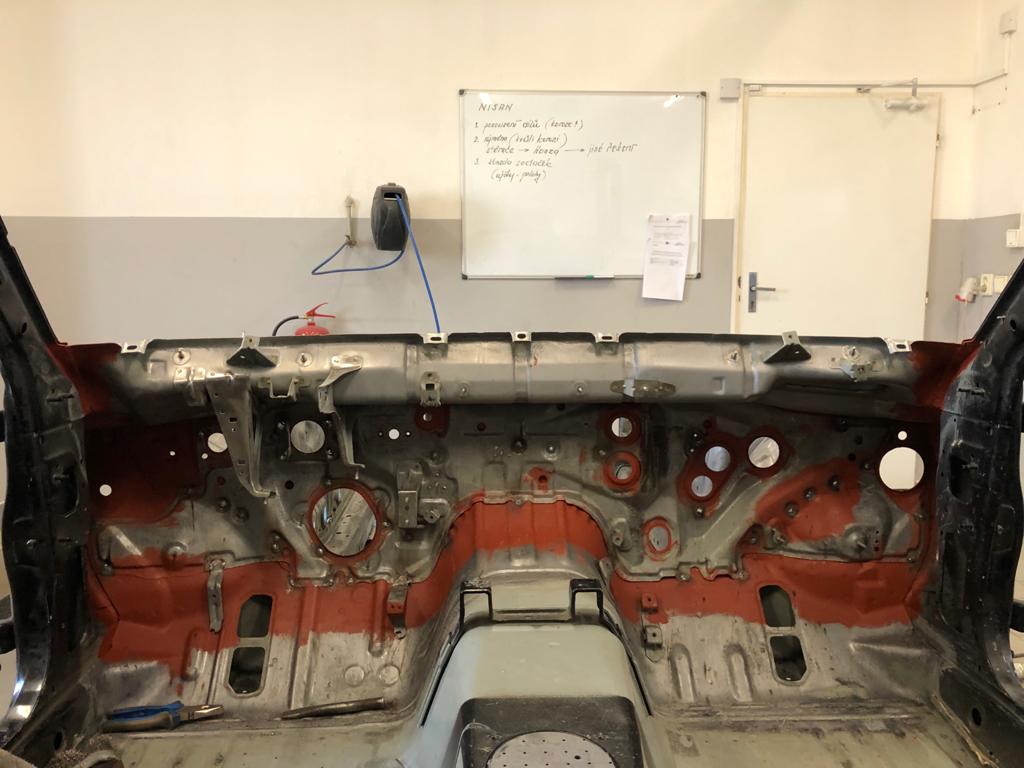Auto se změřilo, nascanovalo, je rovné, tak se začlo s odbodováním jednotlivých dílů předku, nakonec to bohužel nepůjde tak jak bylo plánování, že by se odbodoval celý firewall a vyměnil se kus za kus, protože ten ze zlaté na tom není dobře a budeme se snažit zachovat co nejvíc plechařiny z s15, takže v některých místech to bude trochu složitější. Ale naštěstí díky novým technologiím by mělo být pasování dílů o něco snažší, než tomu bylo dříve. Taková zajímavost, jelikož se bude tahat nová elektrika, tak se nechají průchodky z RHD verze, aby se netahala kabeláž okolo svodů a kolem motorového prostoru jak je to v sérii, ale kratší cestou, jelikož bude výrazně zjednodušená i díky CAN komunikaci, tak by se to mělo vejít.