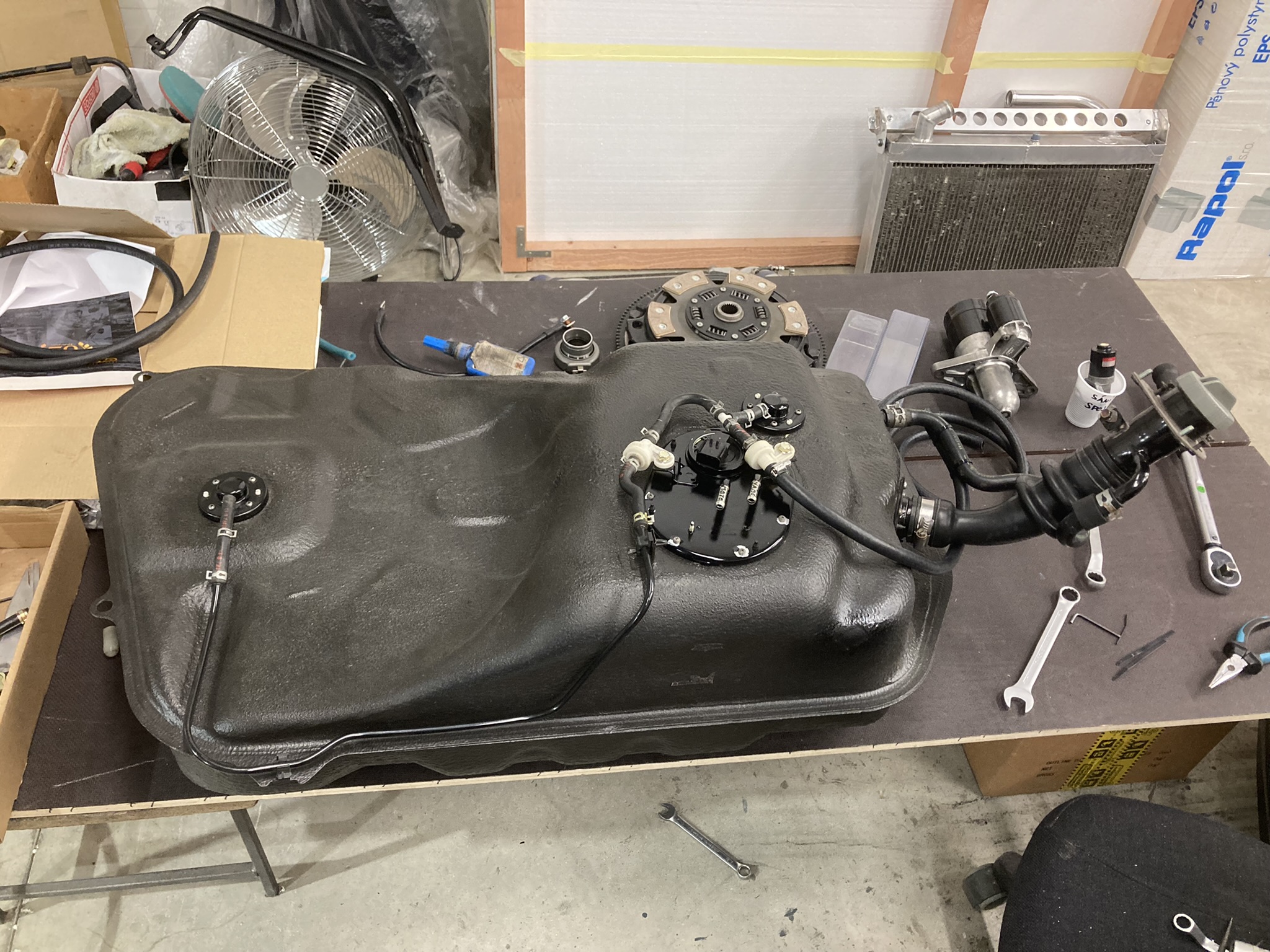 Dodělané palivo...osazená hlavní Walbro pumpa v surge tank a původní pumpa (asi ze supry) naistalované jako podávací....naskládat do vše otvorem sotva na ruce do vnitřku nádrže docela masakr....snad to bude fungovat a nebude to dělat problémy....