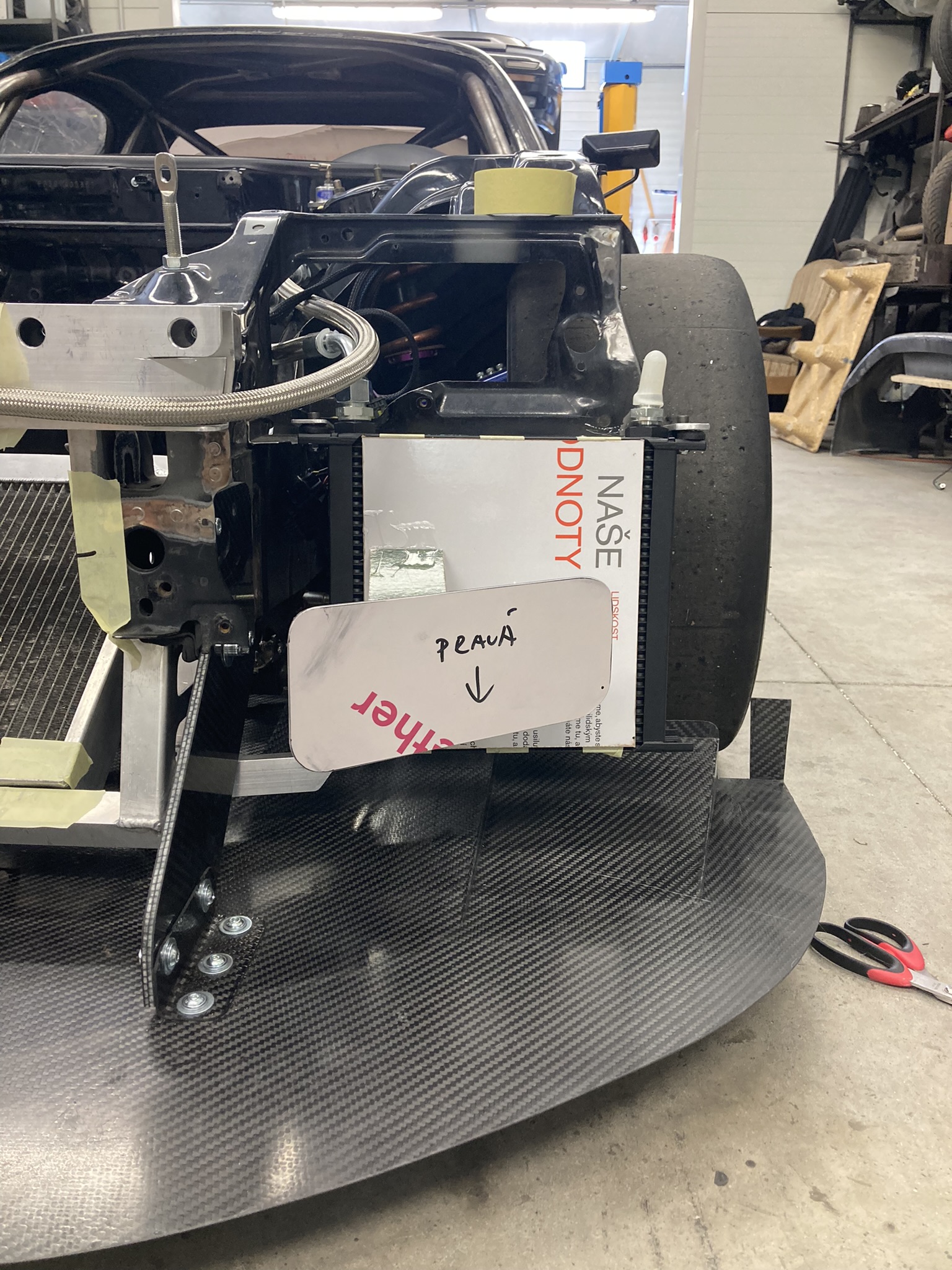Celkově chybí: Vyrobit formy na podběhy a airducty (tohle ještě nějaký čas zobne), roztahat brzdové vedení (toho se bojim....to bude zase boj závitů - Válce americký, abs německý, třmeny vzádu japonský), uložit ABS čidla, přidělat hasičák a roztahat vedení, držáčky přístrojovky vevařit do rámu, při montovat podlážky, vyrobit vedení ke spojce, nakopit vysokopevnostní šrouby na přítlačák, který se předelával, nalisovat vodící ložisko hřídele převodovky do kliky, vysoustružit vymezovací kužely na kosti stabíků, koupit siláče stabíků, nakomaxovat stabíky a držáky, vyrobit na CNC objímky řízení, vyrobit vedení hydralické k servu z pumpy, držáky hadic pro přívod vzduchu ke kotoučum + nasavače, vyrobit nějak šikovně tažné oko napředek, nalakovat motorák a vnitřek + karbon díly.