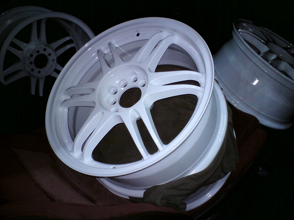 jendno z nich je trochu vykousnuté na obvodu, takže už je vyzuté a půjde na opravu. Potom je v plánu komaxit na všechny, asi zůstanu u bílé barvy, k tomu autu to fakt sedí