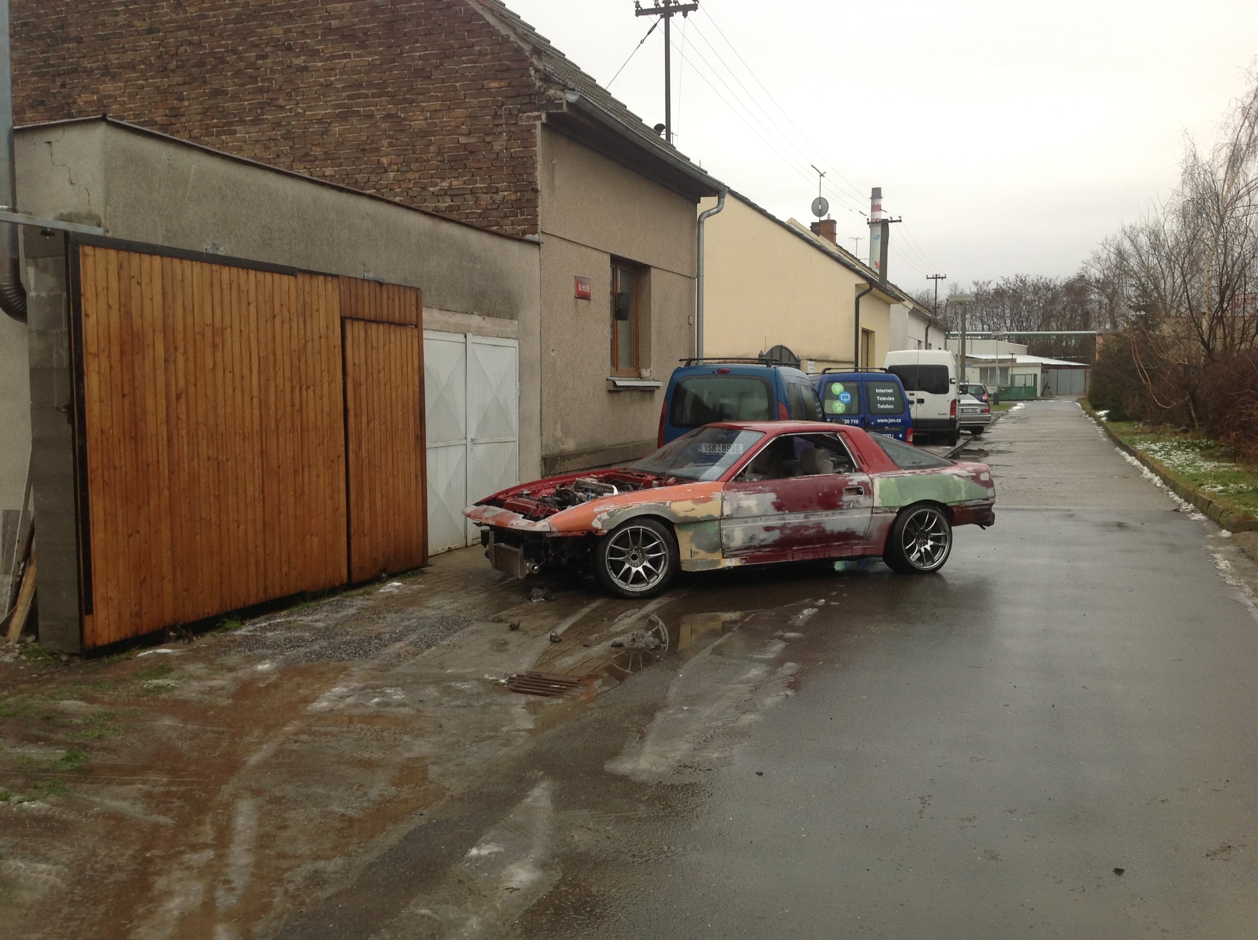 Místo toho abych makal radši jsem sjížděl starší fotky a našel pěknou momentku která byla udělána pul hodinky potom co mi praskla jedna olejová hadice. Budíky naštěstí zahlásili v čas a tak se nestala žádná tragédie. Jinak bych to už fakt snad rozřezal