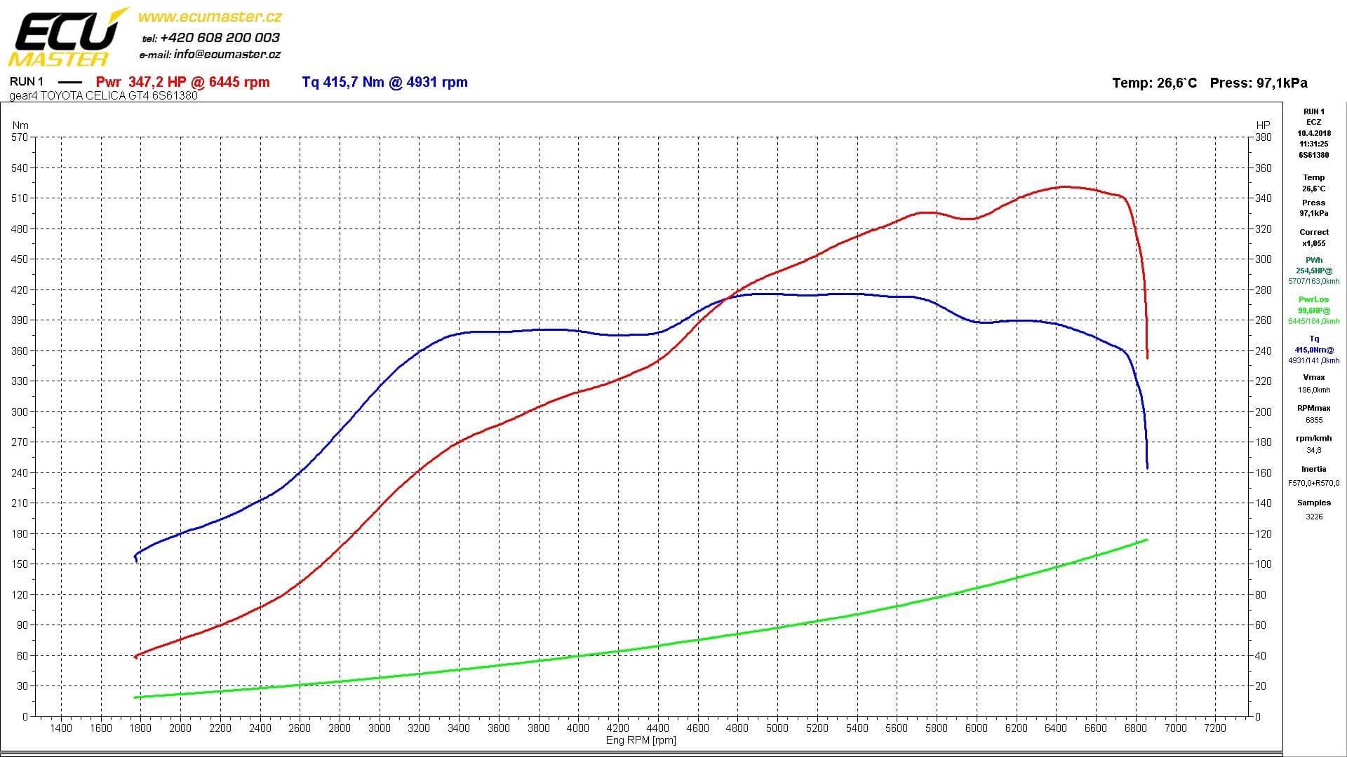 Trochu aktualizace - Celica na betonu do detailu doladena mapa, v Korpetu odbrzdeno na 346ps a 475nm pri poměrně konzervativním tlaku. Nehonily se ani tak vysoka cisla, jako spíš sametová křivka pro reálné použití na silnici. Spokojenost s klukama Hajsel Motorsport veliká! Jinak nás ale trápí další dětské nemoci, hlavně s elektrikou (konec září Korpet) a pár drobností jako uložení diffu apod. Pořád je co dělat